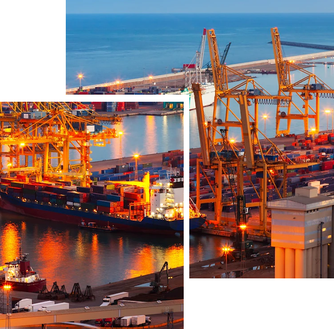 Gəmiçilik sənayesi bir çox prosesləri və şöbələri əhatə edir. Bunlardan bəziləri yüklərin gəmilərə yüklənməsi və boşaldılmasnda istifadə olunan dayaqlar, bağlama prosesində istifadə olunan bucurqad sistemləri və gəmilərin saxlanıldığı hissələr olan quru və ya yaş hovuzlardır.
